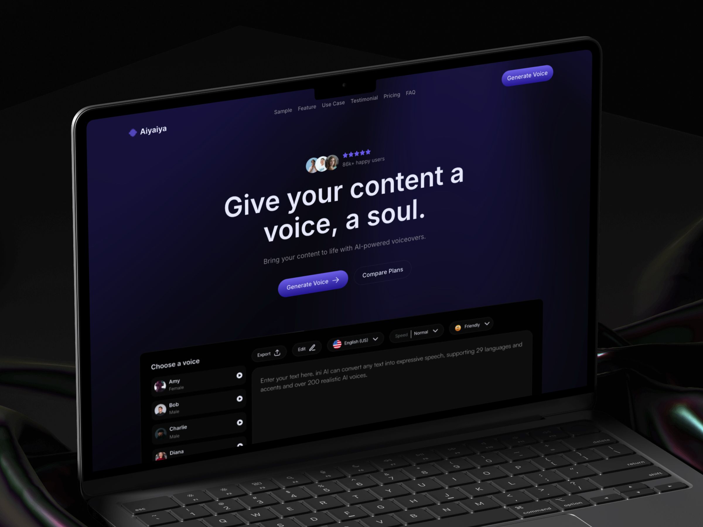 Aiyaiya - AI SaaS Landing Page Framer Template (Text to Speech/TTS)